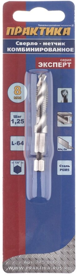 Equipment: piece, dimensions: 8x64 mm, shank type: hexagonal, quantity in a set package: 1 pc., drill material: HSS, for metal