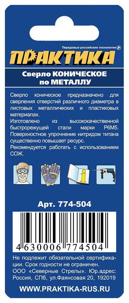 Drilling diameter 6-20 mm, maximum sheet thickness 4 mm, titanium nitride coating