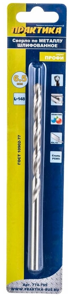 Equipment: piece, dimensions: 6.5x101x148 mm, shank type: cylindrical, quantity in the set package: 1 pc., drill material: HSS, sharpening angle: 118 degrees, for metal