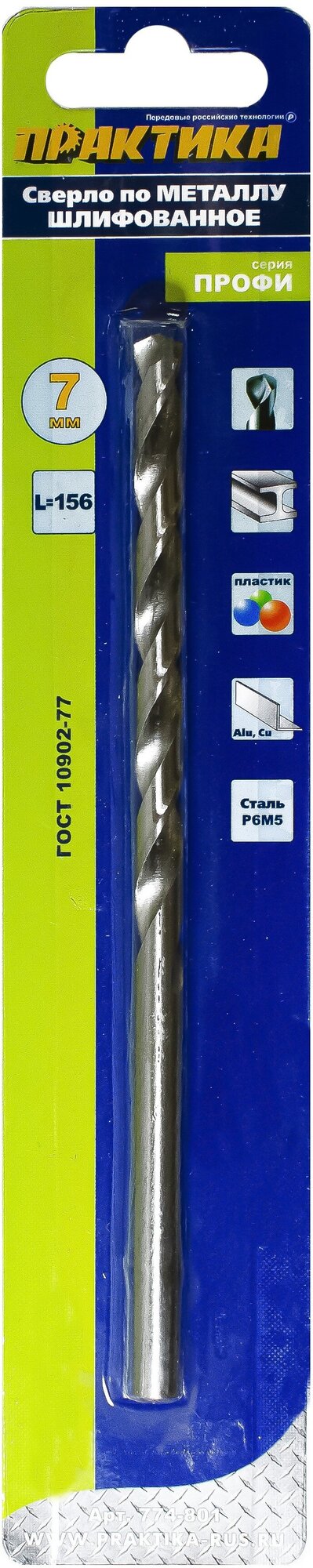 Equipment: piece, dimensions: 7x108x156 mm, shank type: cylindrical, quantity in the set package: 1 pc., drill material: HSS, sharpening angle: 118 degrees, for metal