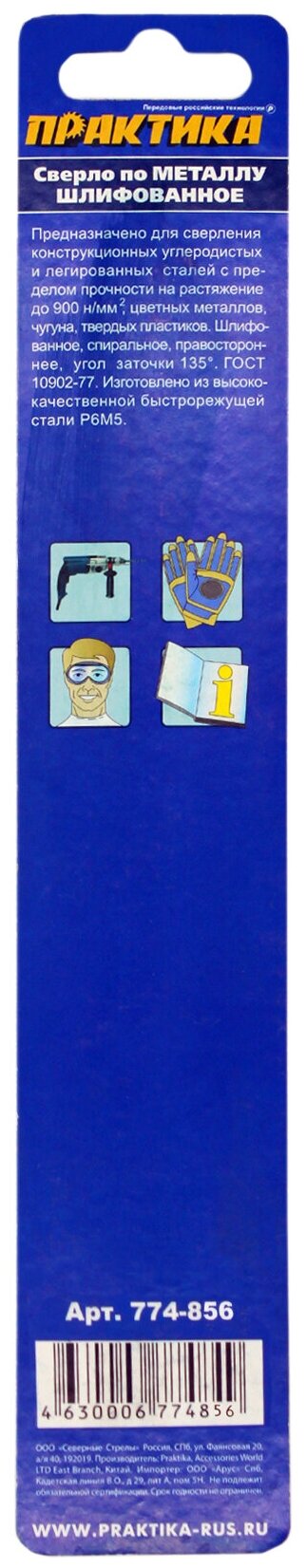 Equipment: piece, dimensions: 9.5x120x178 mm, shank type: cylindrical, quantity in the set package: 1 pc., drill material: HSS, sharpening angle: 118 degrees, for metal