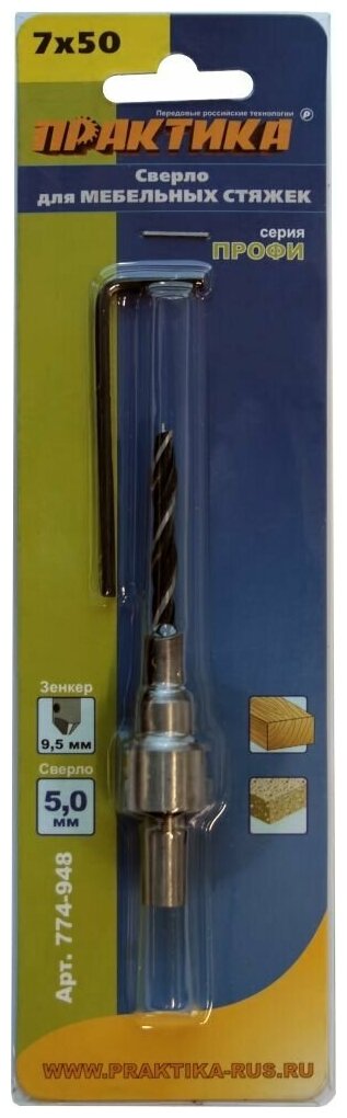 Drill material - carbon tool steel, countersink - 9.5 mm countersinking for a countersunk head, coupler 7x50 mm