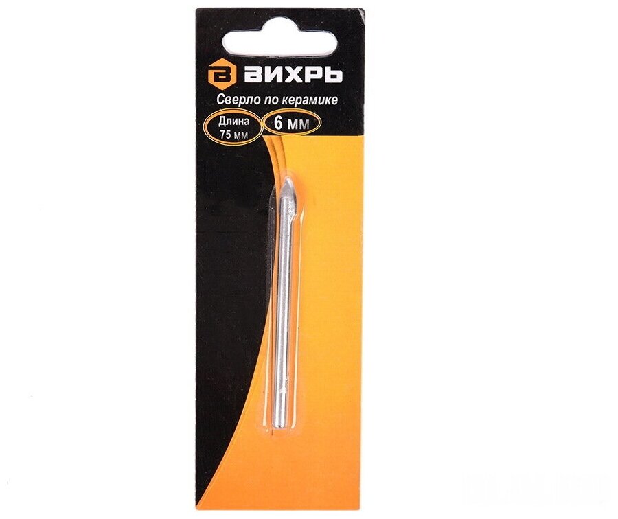 Equipment: piece, dimensions: 6x75 mm, shank type: cylindrical, quantity in a set package: 1 pc., for ceramic tiles, for glass