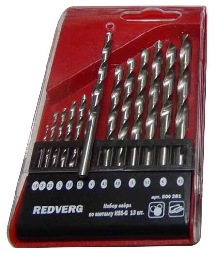 Sizes: for metal 2, 3, 4, 5, 6, 1.5, 2.5, 3.2, 3.5, 4.5, 4.8, 5.5, 6.5 mm, shank type: cylindrical, number in the set package: 13 pcs., drill material: HSS- G, sharpening angle: 118 degrees, for metal