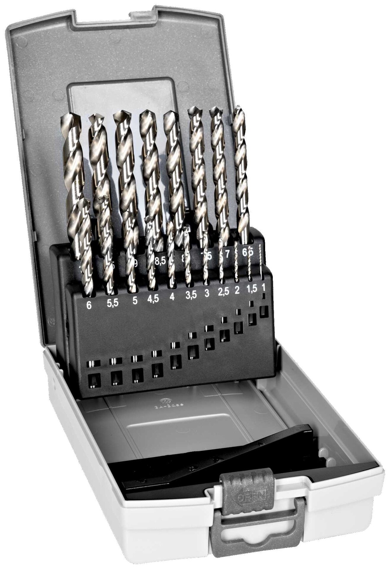 Shank type: cylindrical, quantity in a set package: 19 pcs., drill material: HSS, sharpening angle: 130 degrees, for metal