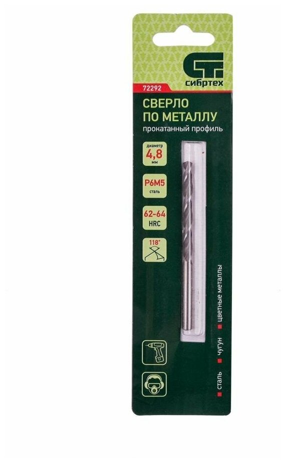 Drill for metal, 4.8 mm, R6M5 Sibrteh