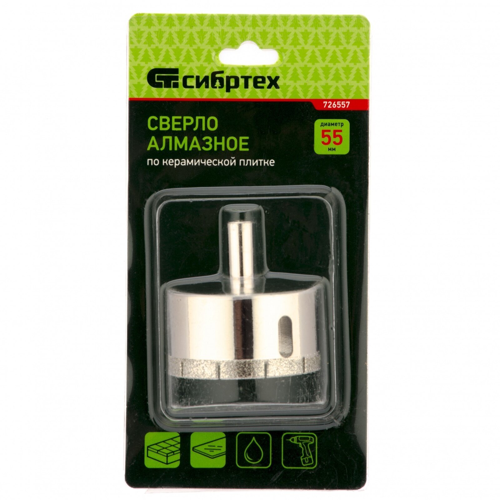 Equipment: piece, dimensions: 55x55 mm, shank type: cylindrical, quantity in a set package: 1 pc., for ceramic tiles, for glass