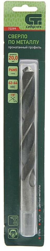 Equipment: piece, dimensions: 20x140x205 mm, shank type: cylindrical, quantity in a set package: 1 pc., drill material: HSS, sharpening angle: 118 degrees, for metal