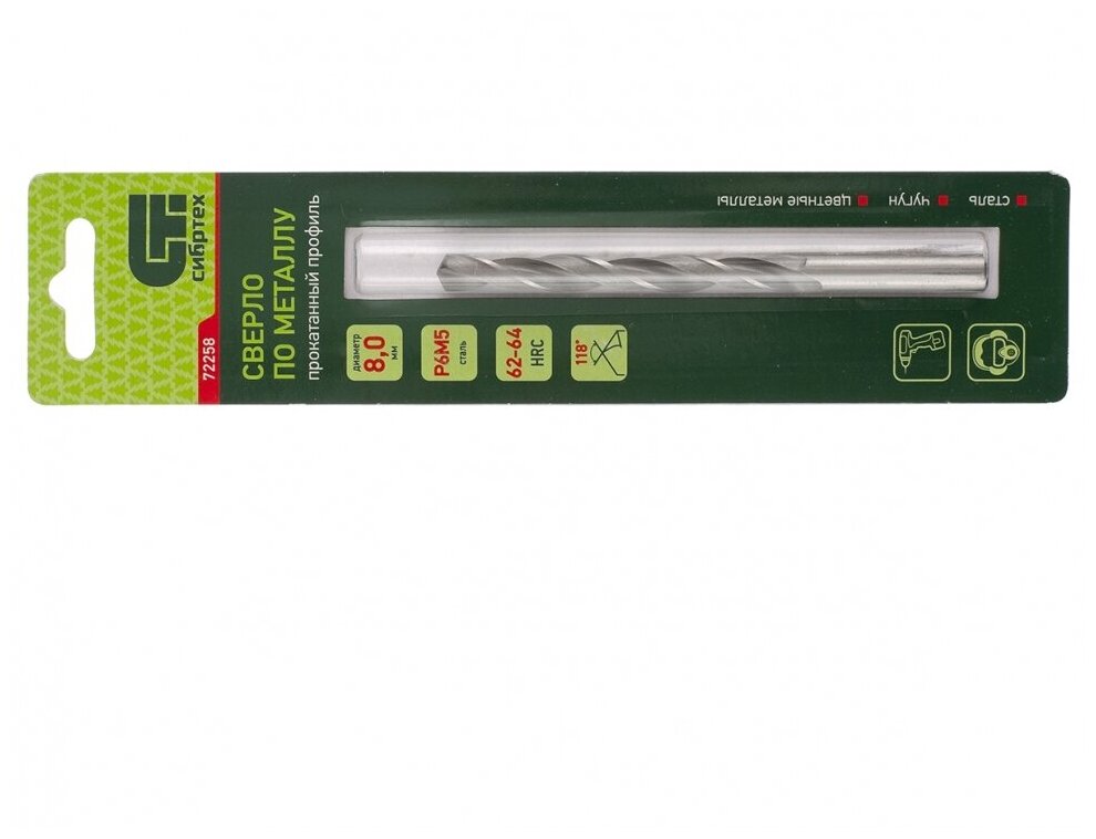 Equipment: piece, dimensions: 9.5x81x125 mm, shank type: cylindrical, quantity in the set package: 1 pc., drill material: HSS, sharpening angle: 118 degrees, for metal