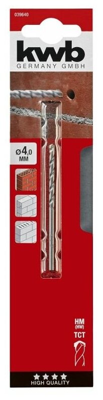 Equipment: piece, size: 4 mm, shank type: cylindrical, quantity in the set package: 1 pc., for stone and porcelain stoneware, for brick, for concrete