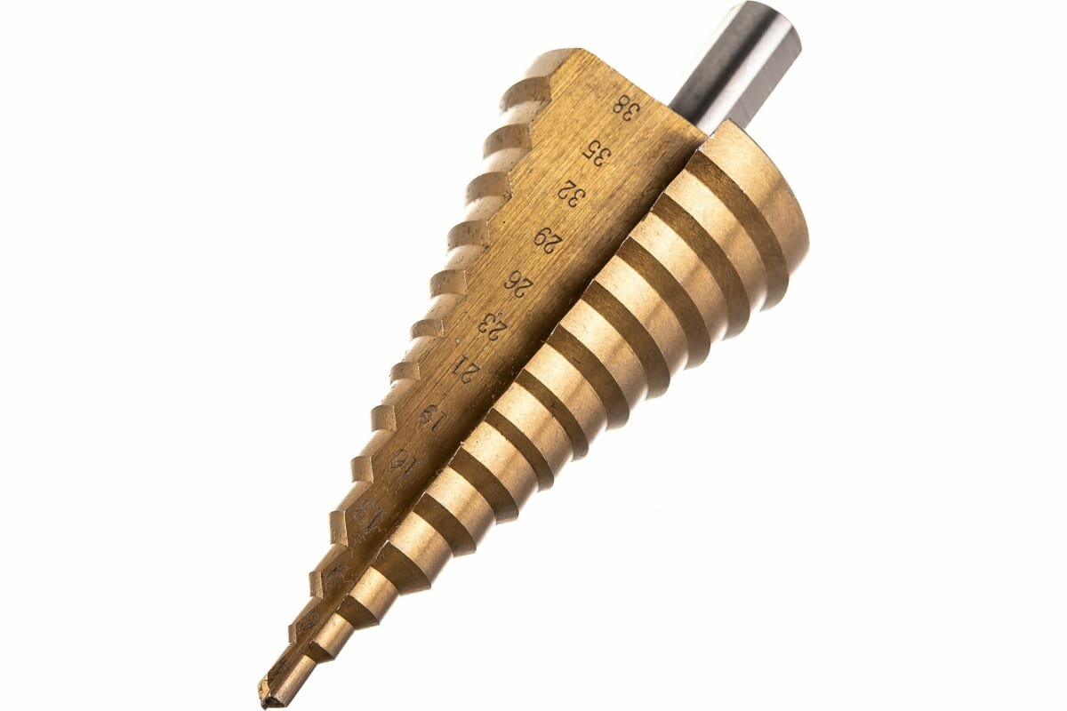 Equipment: piece, standard sizes: 13 steps 4-38 mm, shank type: hexagonal, quantity in a set package: 1 pc., drill material: HSS, for metal