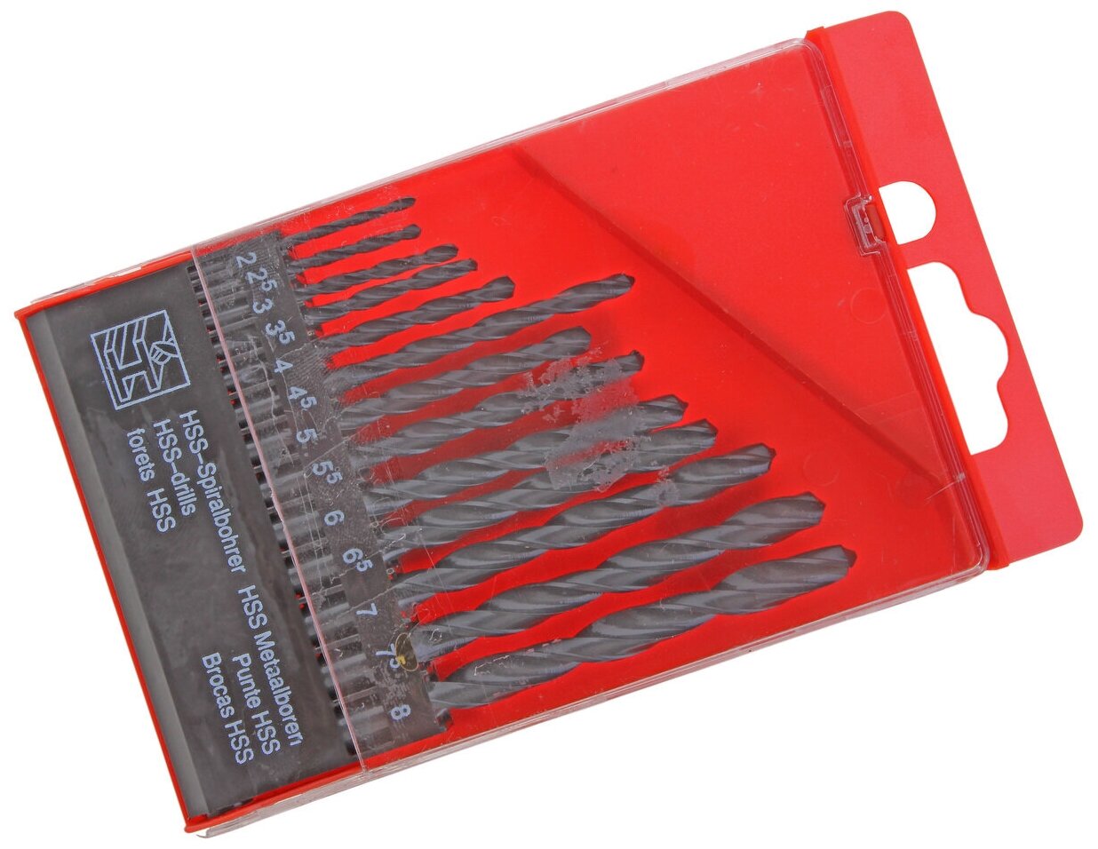 Equipment: set, dimensions: for metal 2x2.5x3x3.5x4x4.5x5x5.5x6x6.5x7x7.5x8 mm, shank type: cylindrical, quantity in the set package: 13 pcs., drill material: HSS, for metal