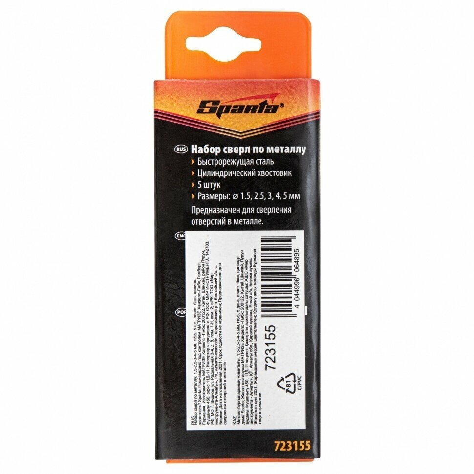 Equipment: Drill, drill, set of drills, standard dimensions: for metal 1.5x2.5x3x4x5 mm, shank type: cylindrical, quantity in the set package: 5 pcs., drill material: HSS, for metal