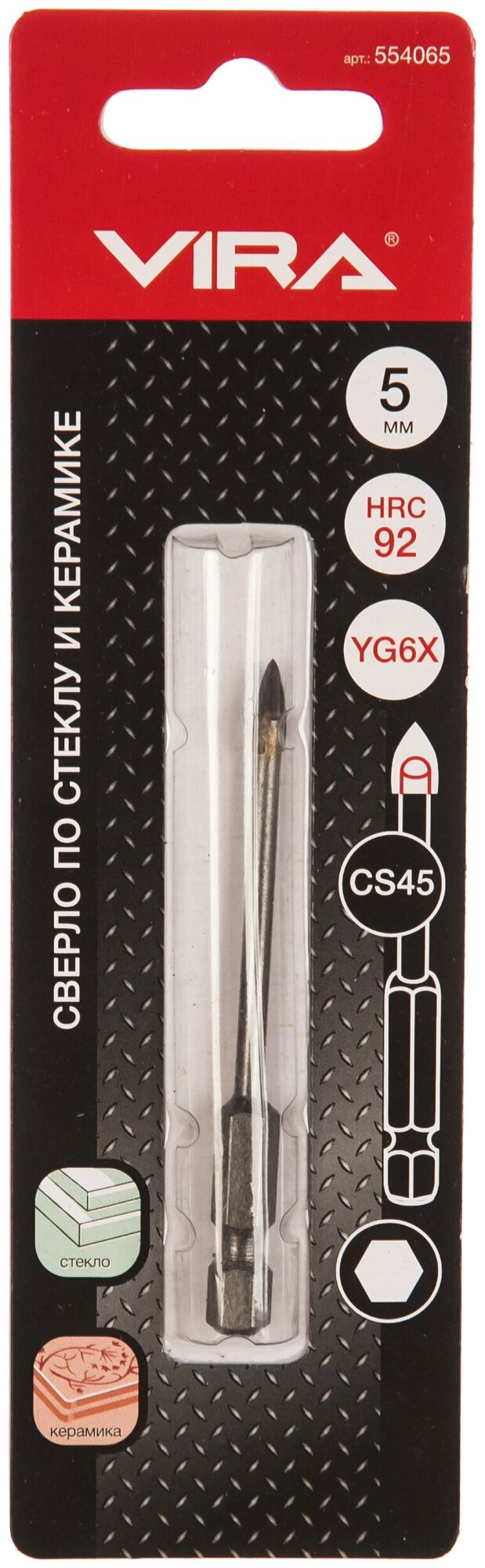 Drill for glass and ceramics 5 mm: 1/4HEX VIRA 554065 16068314