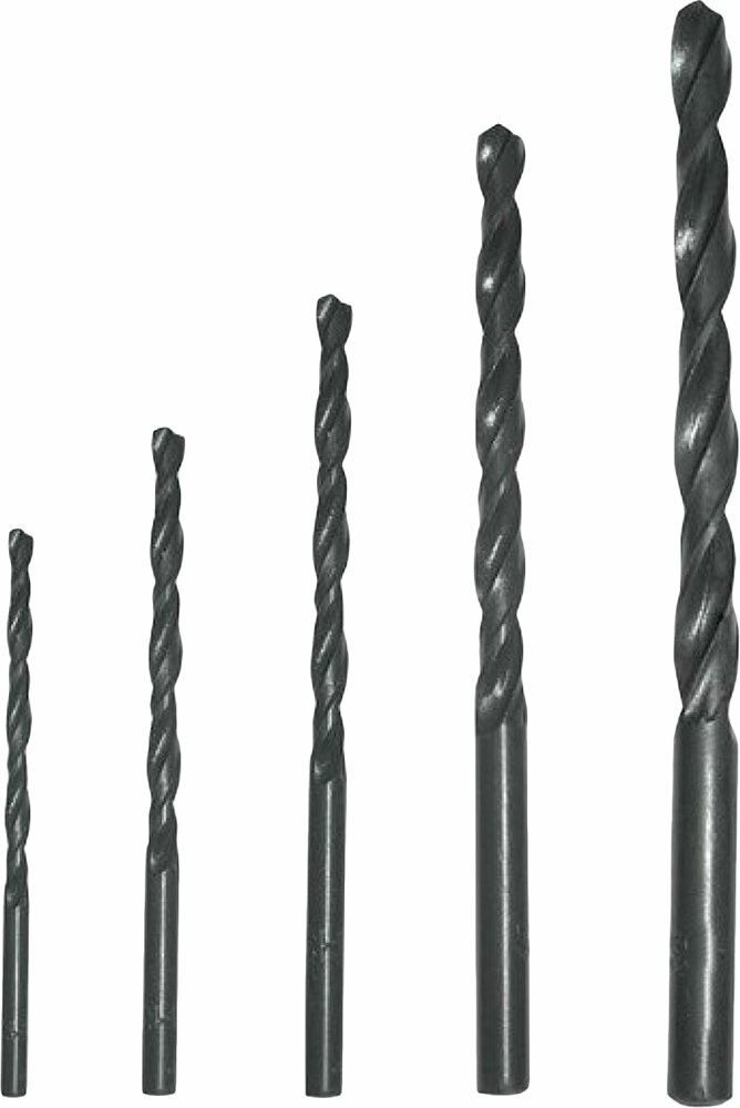 Standard sizes: for metal 1.5, 2.5, 3, 4, 5 mm, shank type: cylindrical, quantity per set per package: 5 pcs., drill material: HSS, for metal