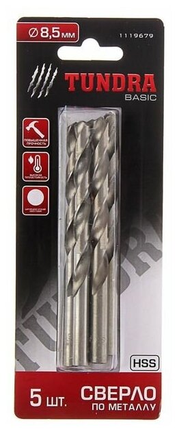 Dimensions: 8.5x115 mm, shank type: cylindrical, quantity per set per package: 5 pcs., for metal