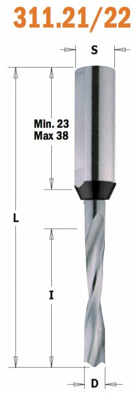 Rotation LH; helical cutting part made of a solid micro-grained carbide of the highest quality; HWM with guide center; 2 cutting edges Z2; 2 spiral grooves; 2 undercut edges with a negative sharpening angle V2