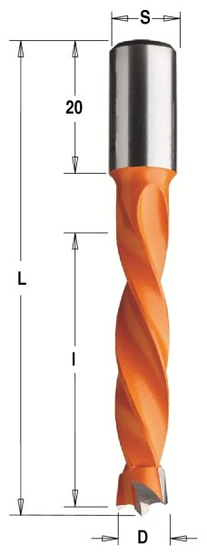 RH rotation; helix coated with orange or black P.T.F.E. HW carbide tip is precisely balanced; 2 carbide cutting edges Z2; 2 cutting teeth V2; 4 flute spiral grooves