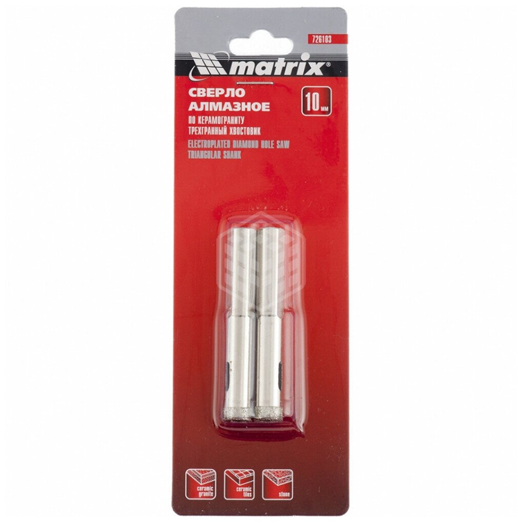 Dimensions: 10x67 mm, shank type: trihedral, quantity in a set per package: 2 pcs., for ceramic tiles, for stone and porcelain stoneware, for glass