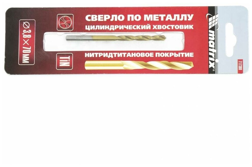 Equipment: piece, dimensions: 3.8x43x75 mm, shank type: cylindrical, quantity in the set package: 1 pc., drill material: HSS-G TiN, sharpening angle: 118 degrees, for metal