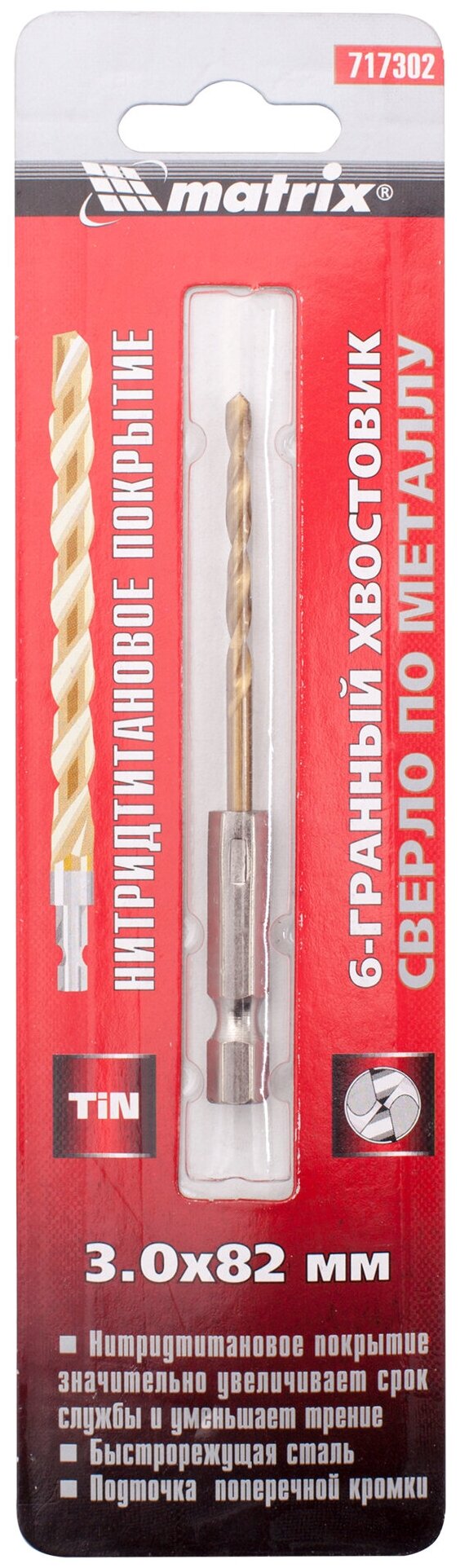 Metal drill HSS-TiN 3х82 mm Matrix 717302 17242305