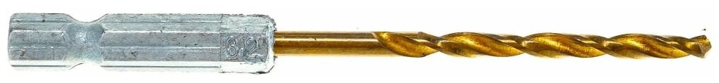 Equipment: piece, dimensions: 3.2x36x85 mm, shank type: hexagonal, quantity in the set package: 1 pc., drill material: HSS-G TiN, sharpening angle: 118 degrees, for metal