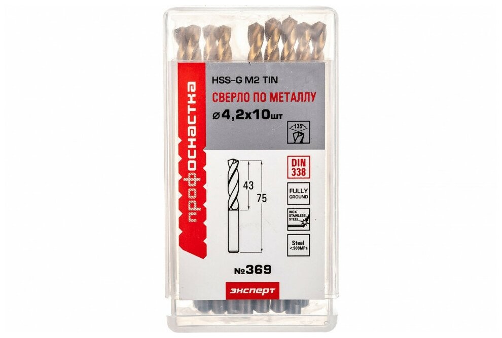 Equipment: piece set, dimensions: 4.2x43x75 mm, shank type: cylindrical, quantity in a set per package: 20 pcs., drill material: HSS-G, sharpening angle: 135 degrees, for metal