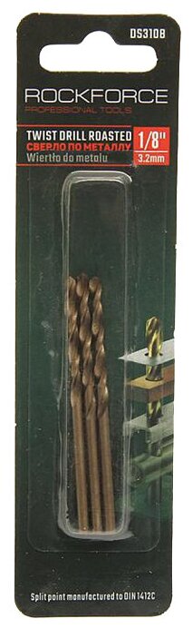 Dimensions: 3.2x18x49 mm, shank type: cylindrical, quantity in a set, package: 3 pcs., drill material: HSS Co, sharpening angle: 118 degrees, for metal