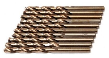 Shank type: cylindrical, quantity in a set package: 10 pcs., drill material: HSS, sharpening angle: 135 degrees, for metal