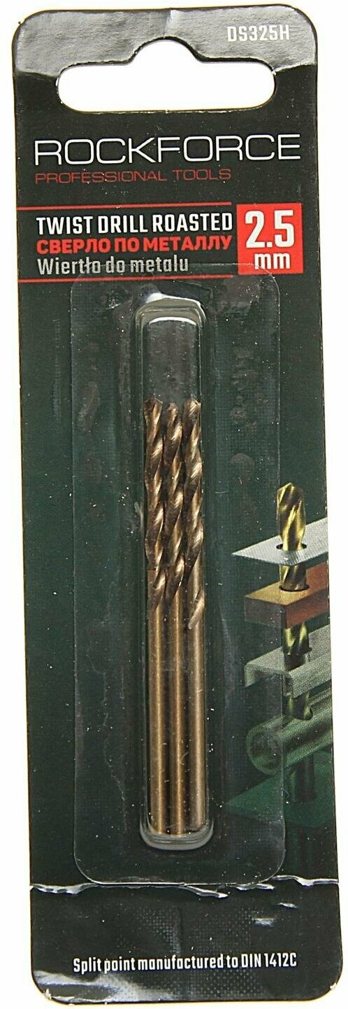 Dimensions: 2.5x30x67 mm, shank type: cylindrical, quantity in a set, package: 3 pcs., drill material: HSS Co, sharpening angle: 118 degrees, for metal