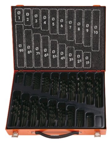 Equipment: set, standard sizes: for metal 1-10 mm, shank type: cylindrical, quantity in a set package: 170 pcs., drill material: HSS, for metal