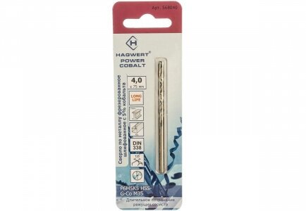 Equipment: piece, dimensions: 4x75 mm, shank type: cylindrical, quantity in a set package: 1 pc., drill material: HSS Co, sharpening angle: 135 degrees, for metal