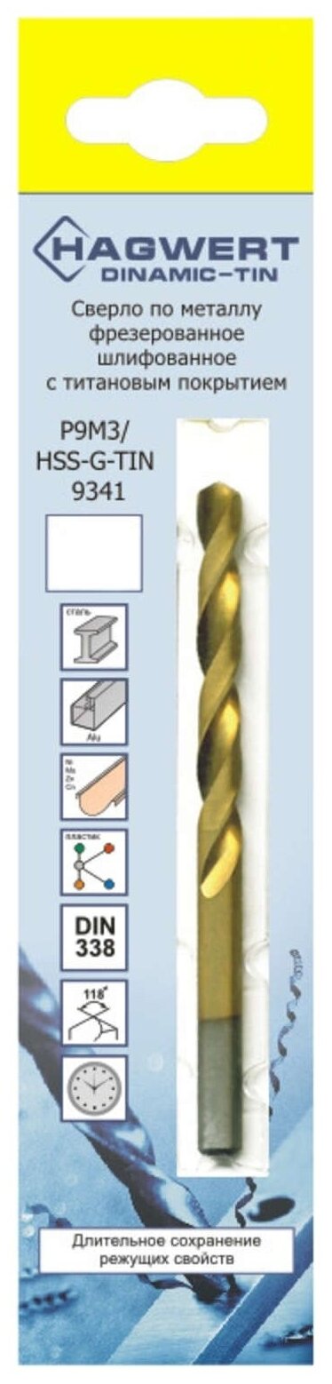 Metal drill Hagwert 567065 HSS-G TiN/P9M3 6.5 x 101 mm