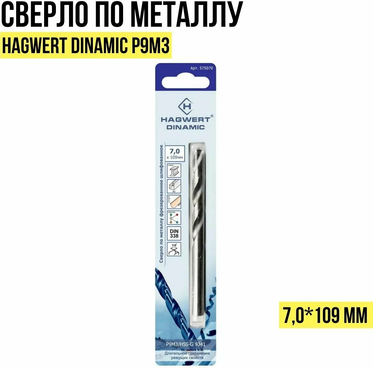 Metal drill Hagwert 575070 P6M5/HSS-G 7 x 109 mm