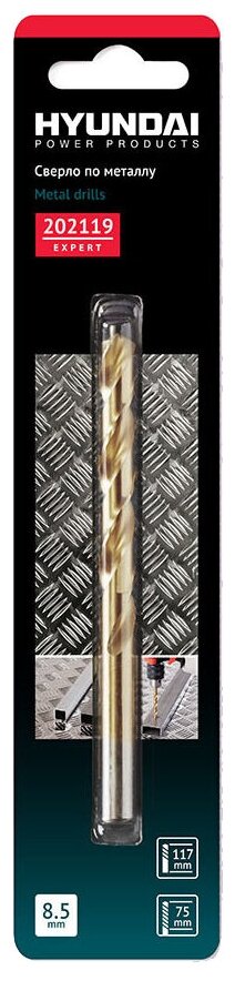 Equipment: piece, dimensions: 8.5x75x117 mm, shank type: cylindrical, quantity in the set package: 1 pc., drill material: HSS-G, for metal