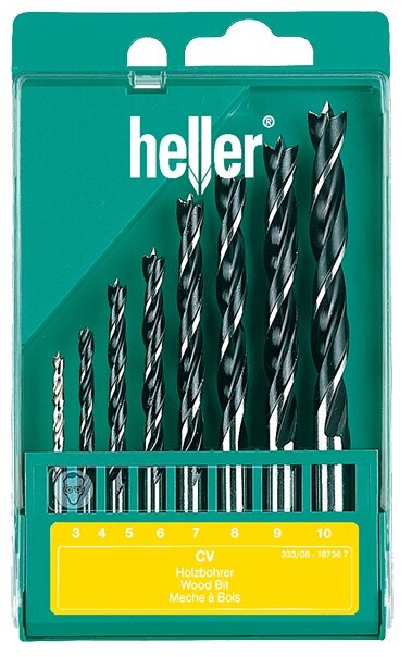 Sizes: for wood 3, 4, 5, 6, 7, 8, 9, 10 mm, shank type: cylindrical, quantity in a set package: 8 pcs., for wood