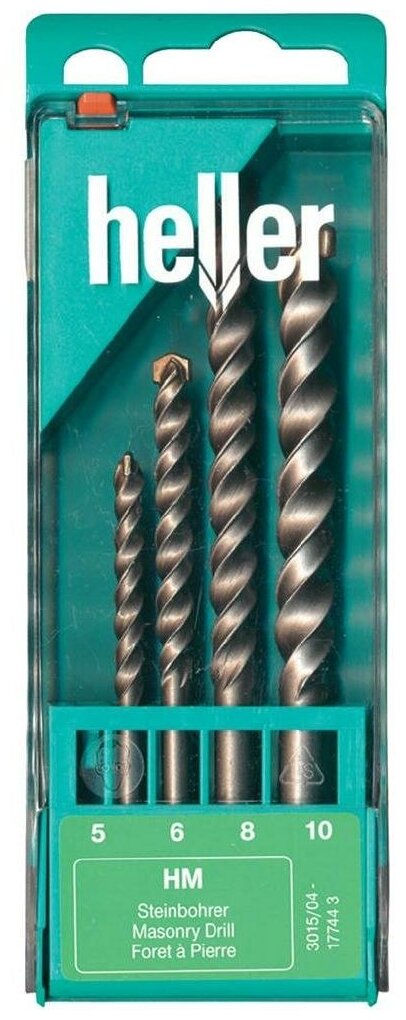 Standard sizes: for concrete 5, 6, 8, 10 mm, shank type: cylindrical, quantity in a set package: 4 pcs., for stone and porcelain stoneware, for brick, for concrete