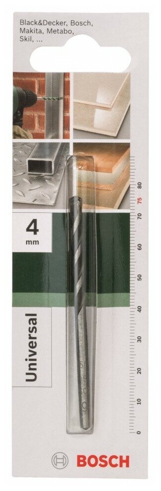 Equipment: piece, dimensions: 4x40x75 mm, shank type: cylindrical, quantity in a set package: 1 pc., for ceramic tiles, for bricks, for concrete, for wood, for metal