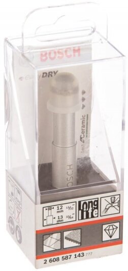 Equipment: piece, dimensions: 12x33 mm, shank type: cylindrical, quantity in a set package: 1 pc., for ceramic tiles, for glass