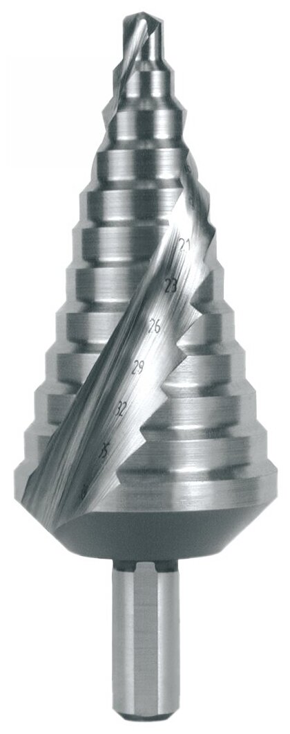 Equipment: piece, standard dimensions: 12 steps 6x9x13x16x19x21x23x26x29x32x35x38 mm, shank type: cylindrical, quantity in the set package: 1 pc., drill material: HSS, sharpening angle: 118 degrees, for metal