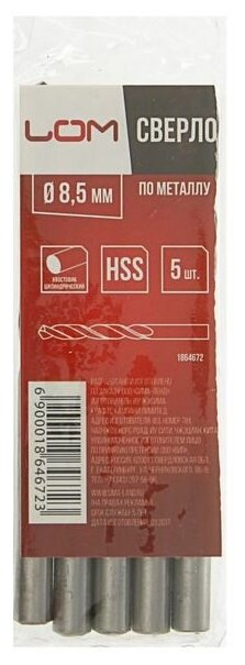 Dimensions: 8.5 mm, shank type: cylindrical, quantity in a set package: 5 pcs., drill material: HSS, for metal