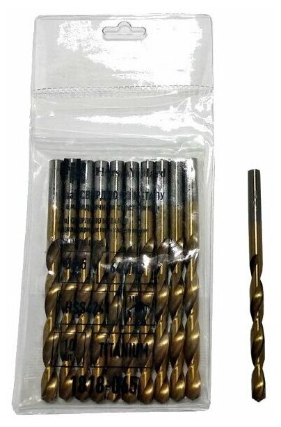 Equipment: piece set, shank type: cylindrical, quantity in a set package: 10 pcs., drill material: HSS 4241, sharpening angle: 118 degrees, for metal