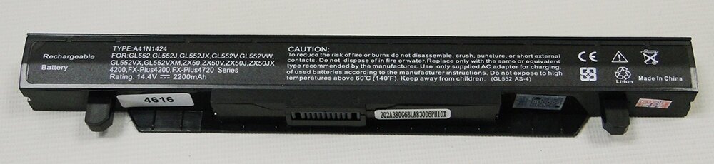 Purpose: for laptops, battery capacity: 3150 mAh, battery type: Li-Ion, voltage: 14.40 V, compatibility: ASUS