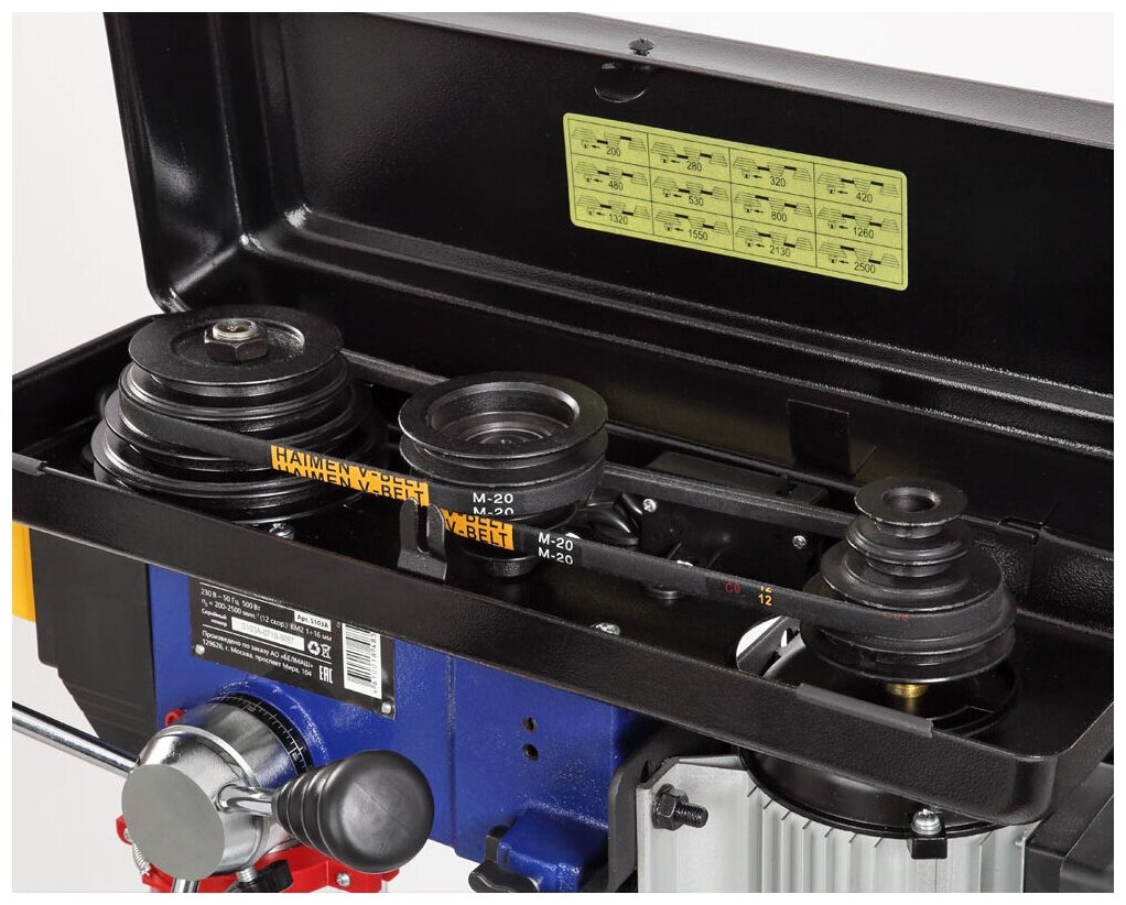 Type of machine: vertical drilling, number of revolutions: 2430 rpm, number of speeds: 5, maximum drill diameter: 13 mm, maximum spindle overhang: 127 mm, installation: desktop, options: protective glass, laser, laser