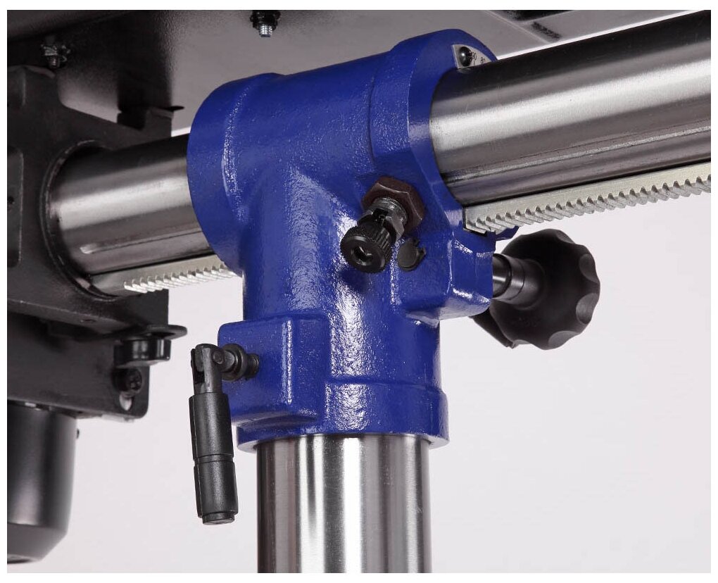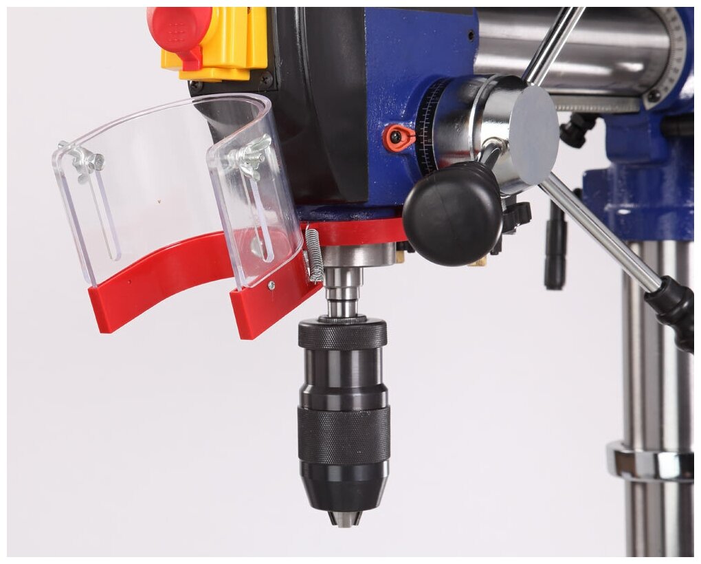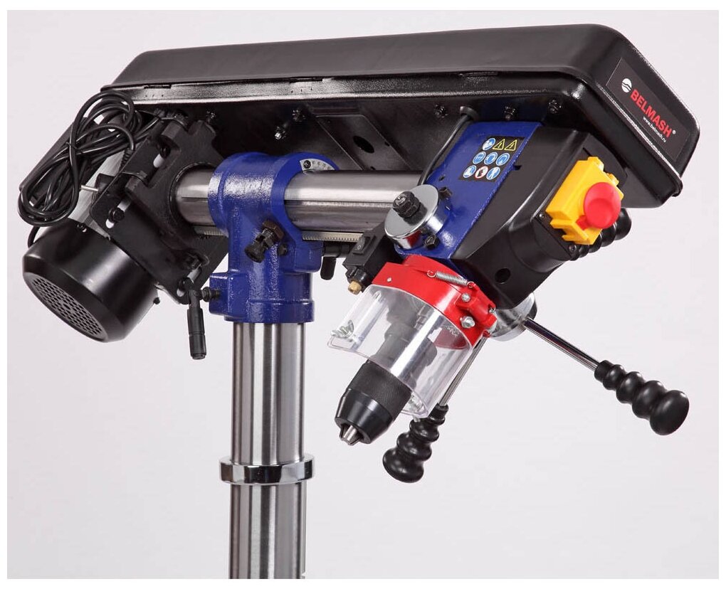 Type of machine: radial drilling, maximum voltage: 230 V, number of revolutions: 2500 rpm, number of speeds: 5, maximum drill diameter: 50 mm, maximum spindle overhang: 430 mm, options: protective glass, laser