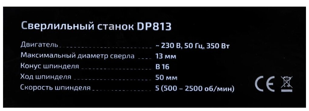 Type of machine: vertical drilling, maximum voltage: 220 V, number of revolutions: 2500 rpm, number of speeds: 5, maximum drill diameter: 13 mm, installation: desktop, options: protective glass