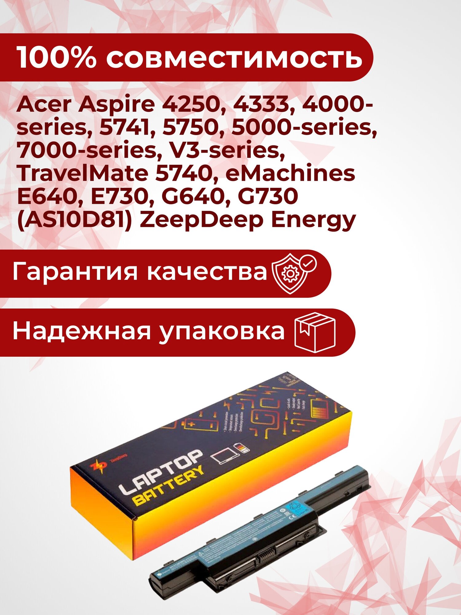 Purpose: for laptops, battery capacity: 4400 mAh, battery type: Li-Ion, voltage: 10.80 V, compatibility: Acer, width: 9 cm, height: 5 cm, length: 31 cm, weight: 380 g