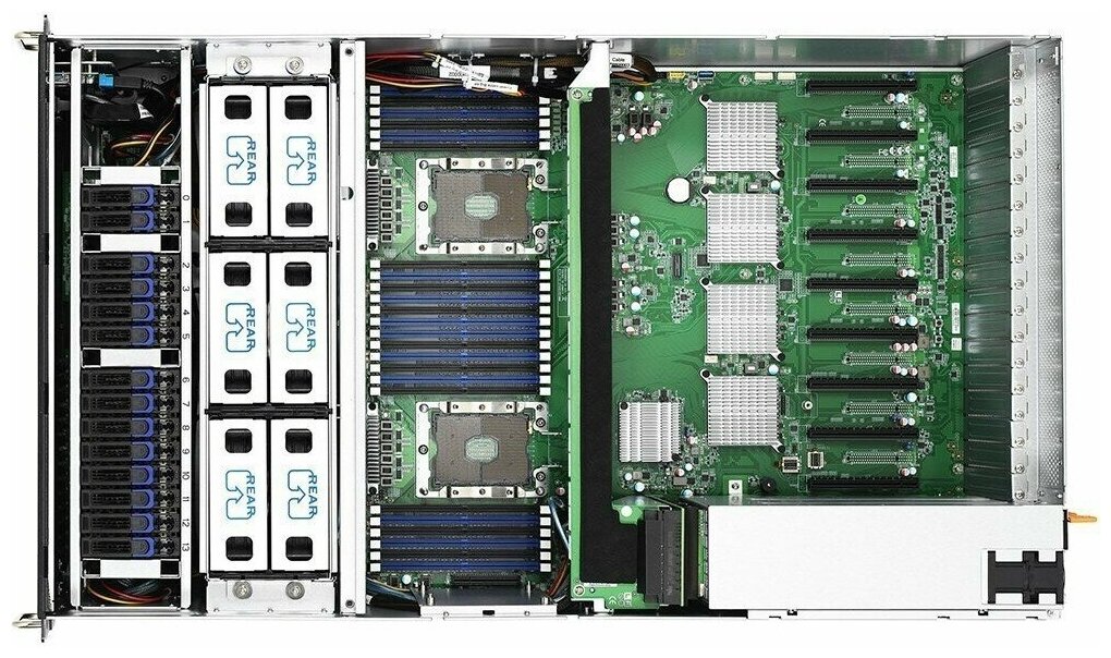 Rack, processors: 0, max. processors: 2, RAM: no RAM, 2.5 Hot Swap: 14, RAID