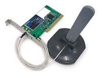 Adapter type: Wi-Fi adapter, connection interface: PCI, functions and features: WEP encryption, WPA encryption, Wi-Fi 802.11 standard: a Wi-Fi 2, b Wi-Fi 1, g Wi-Fi 3, antennas: 1 external