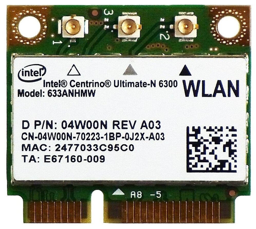 Connection interface: mini PCI-E; Max. wireless connection speed 450 Mbps; Wi-Fi frequency range 2.4 / 5 GHz